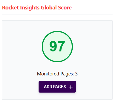 Additionally, in WP Rocket's dashboard tab, the Rocket Insights Global Score section that contains the average score: