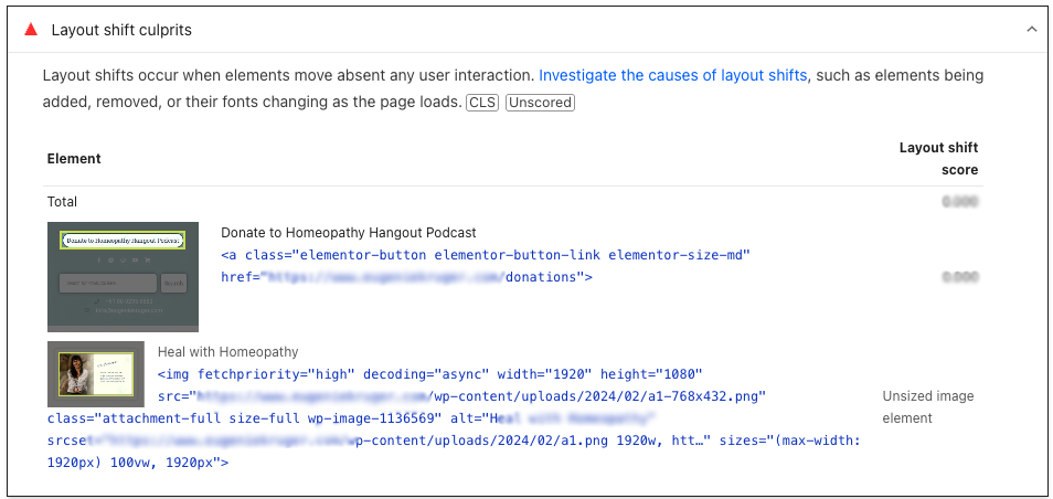Pageedpeed flags this when already loaded elements change their position alone, because other elements are loaded or transformed. This causes a poor user experience, as elements are moving around while visitors try to interact with the page.